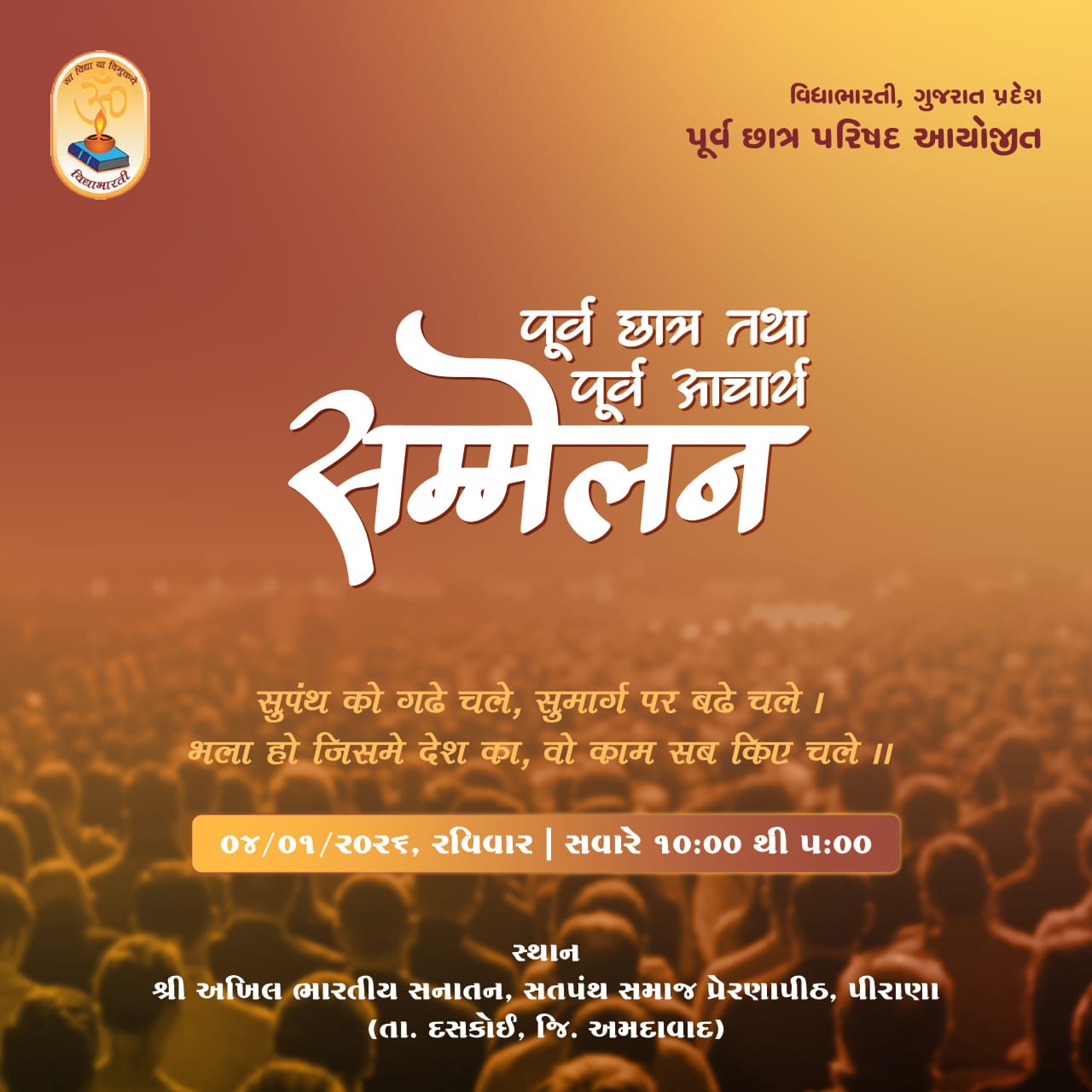 All former students and teachers of Gujarat Pranta schools are warmly invited to participate in this inspiring gathering.