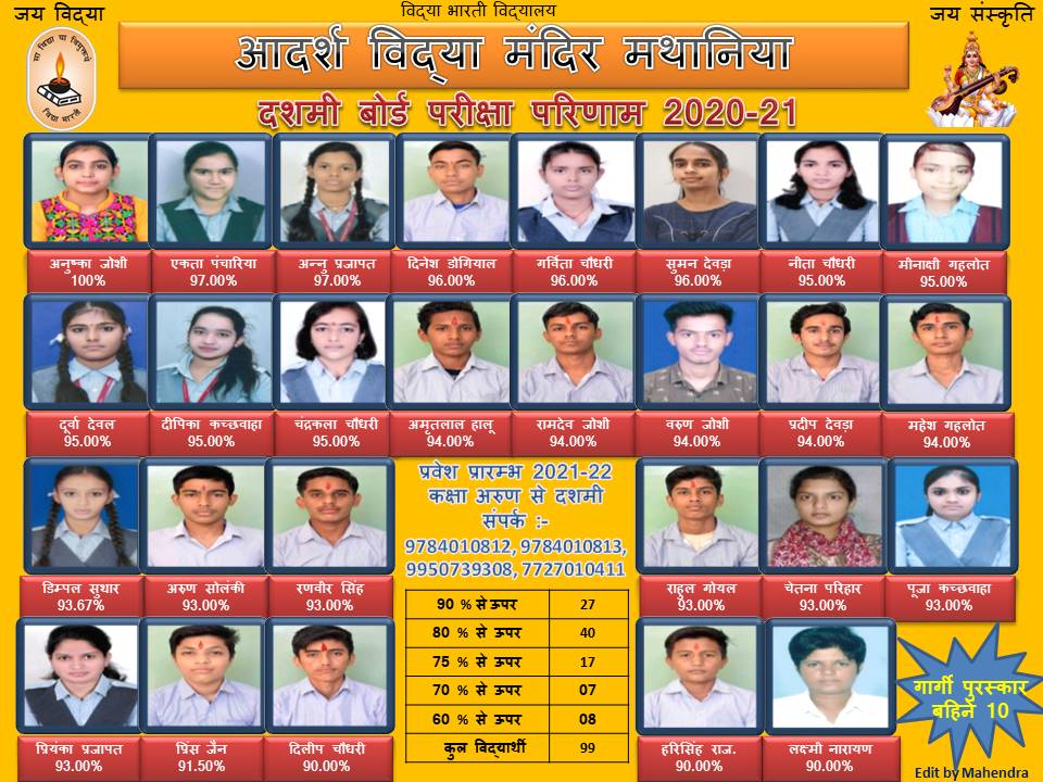 ADARSH VIDYA MANDIR MATHANIA RESULT 2021