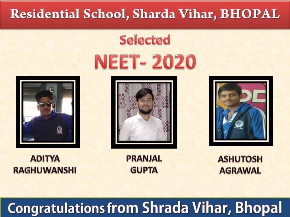 Alumni of Saraswati Shishu Mandir Sharda Vihar Residential School, Bhopal, Ashutosh Aggarwal, Aditya Raghuvanshi and Pranjal Gupta were selected for NEET exam 2020