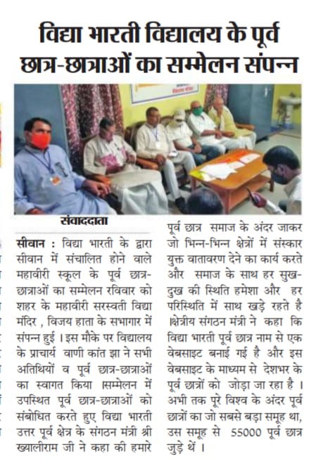 Alumni meet took place of Vidya Bharati Mahaviri schools of Uttar Bihar Pranta.