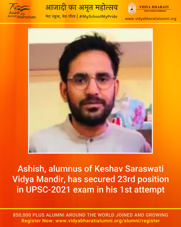 Ashish, alumnus of Keshav Saraswati Vidya Mandir, has secured 23rd position in UPSC-2021 exam in his 1st attempt.