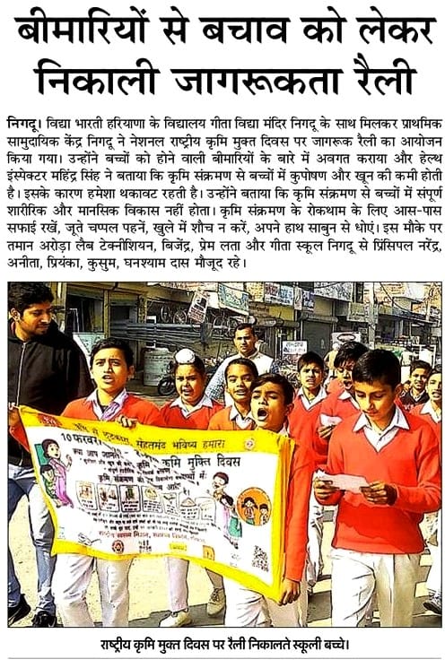 On National Worm free day, 10th Feb, children from Gita Vidya Mandir, Nigdu, Haryana organised a street rally.