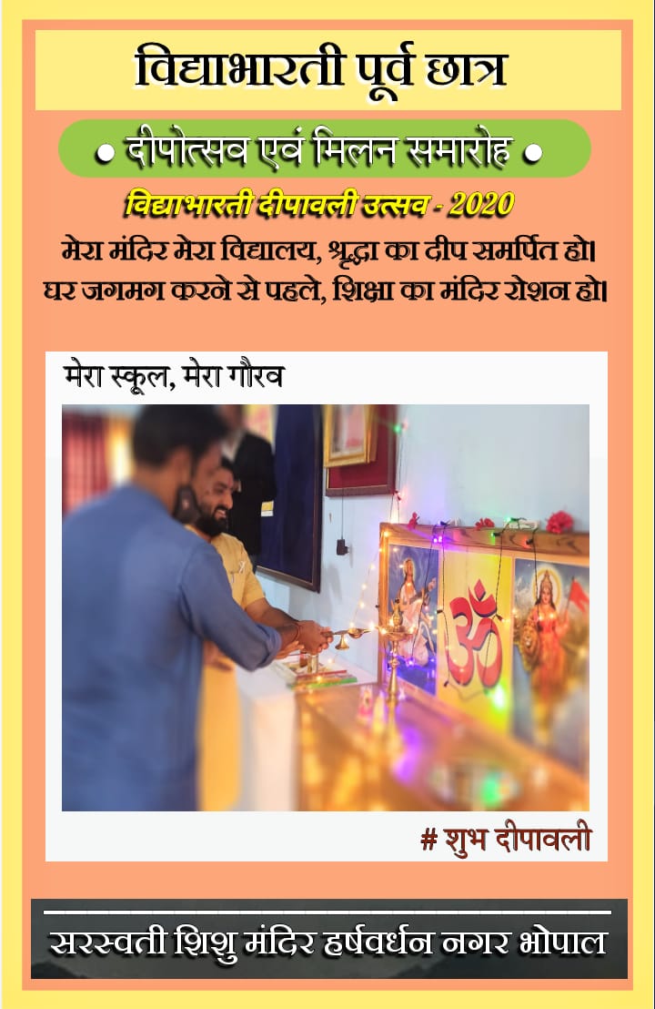 सरस्वती शिशु मंदिर हर्षवर्धन नगर भोपाल में पूर्व छात्रों का दीपोत्सव एवं मिलन समारोह आयोजित हुआ। 5 दीपक : 5 संकल्प
