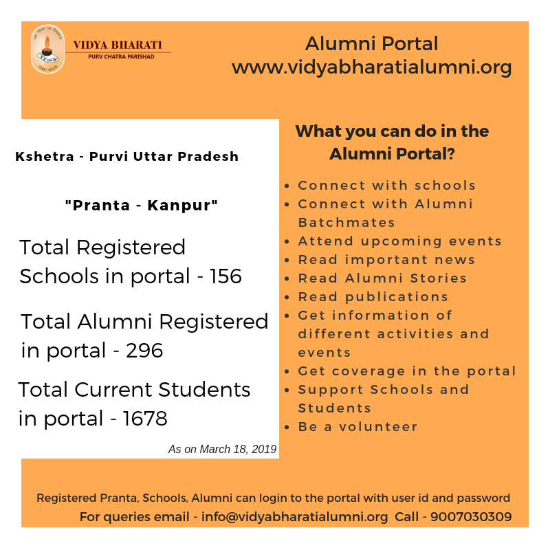 Find more details (Schools & Alumni) of Kanpur Pranta from the Vidya Bharati Alumni Portal.