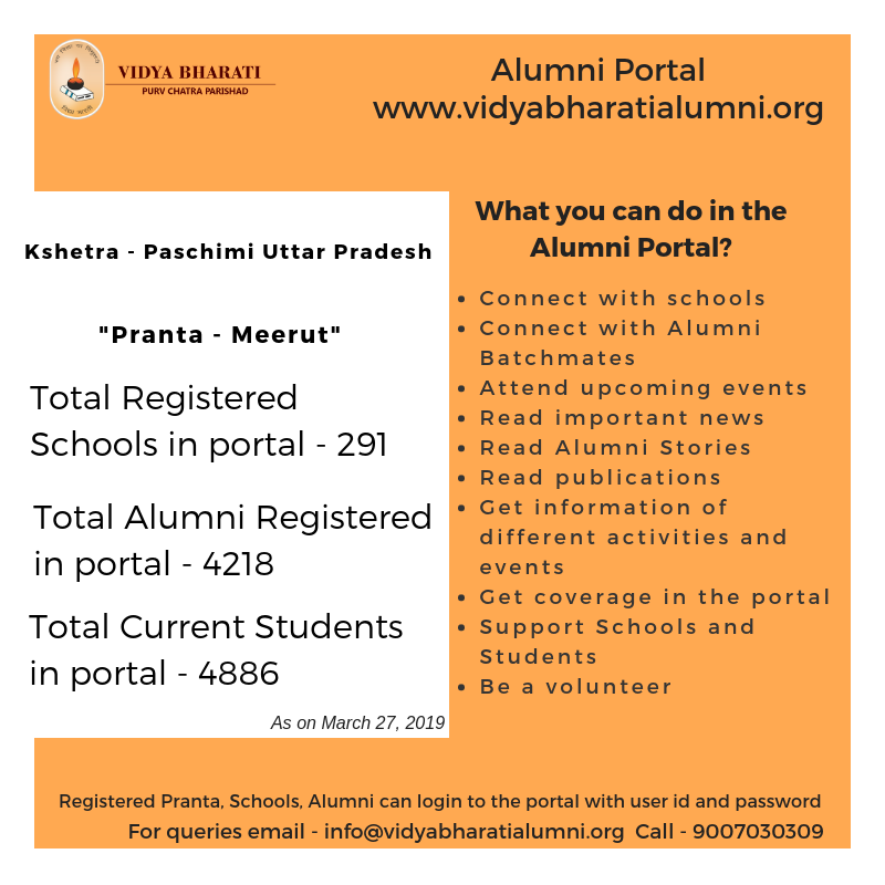 All Vidya Bharati schools can register in the alumni portal to network with alumni members.