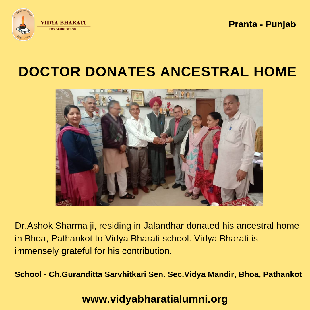 Vidya Bharati is immensely grateful to Dr. Ashok Sharma Ji, for donating his ancestral home to Vidya Bharati school.
