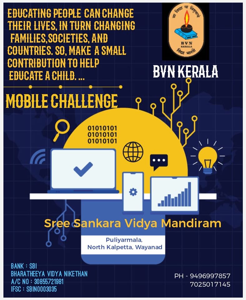 The original inhabitants of Wayanad are the various tribal people or Adivasis. BVN have seventeen (17) schools with a strength of 1700 plus students. Education is the best thing we can give someone to change their life. 95% of our students are from backward community. The Covid 19 pandemic has lead us to explore the world of E-Learning. As mentioned 95% of the students in the area are from backward places and are struggling to get hold of digital infrastructures like computers or smartphones.