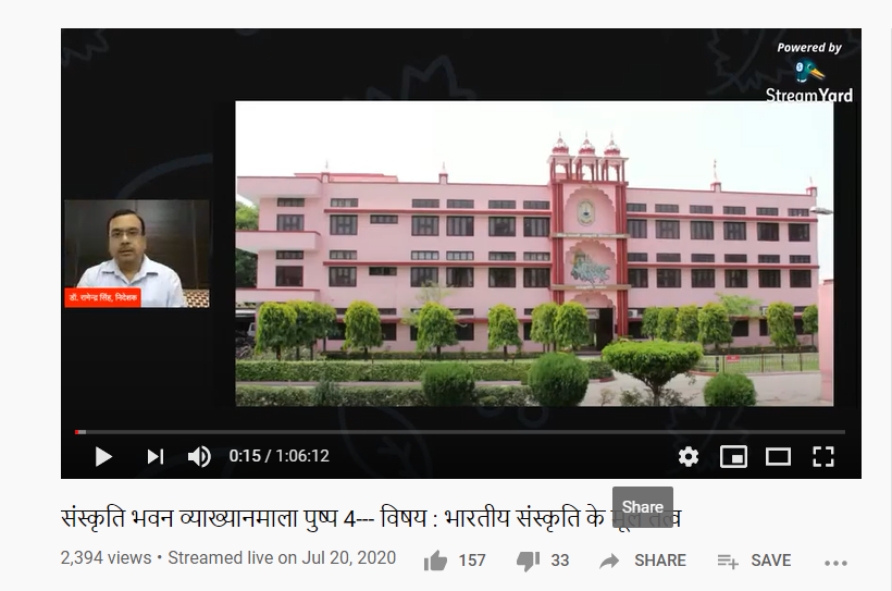 A Presentation on 'The values of Indian culture' was organised by Vidya Bharti Sanskriti Shiksha Sansthan, Kurukshetra,on 21st July on , at vbsss kkr (YouTube).