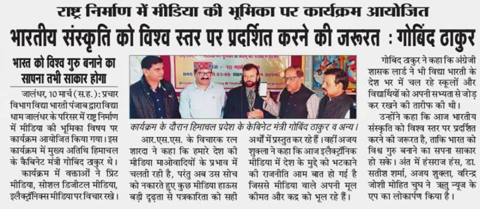 Meeting on the role of media in the nation building and the program of lokarpan in Punjab on 10th March 2019