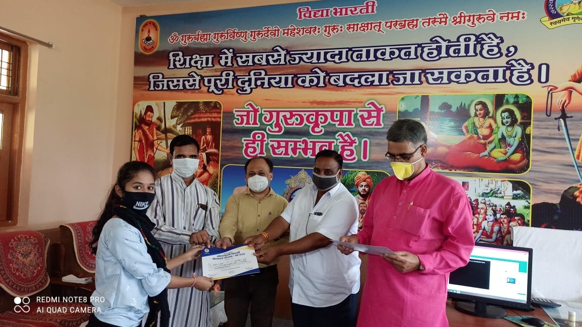 Honorable Chief Minister Shri Shivraj Singh Chouhan, of Madhya Pradesh transferred funds to bank accounts for purchasing laptops to more than 40 thousand meritorious students of the state. Vidya Bharati students of Saraswati Vidya Mandir Dupada Road, Shajapur, has been enlisted to receive the fund.