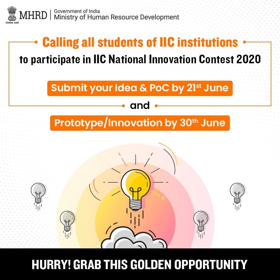 MHRD's Innovation Cell is back with its 2nd edition of IIC National Innovation contest 2020.
