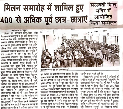 सरस्वती शिशु मंदिर अशोकनगर के मिलन समारोह में शामिल हुए 400 से अधिक पूर्व छात्र-छात्राएं|