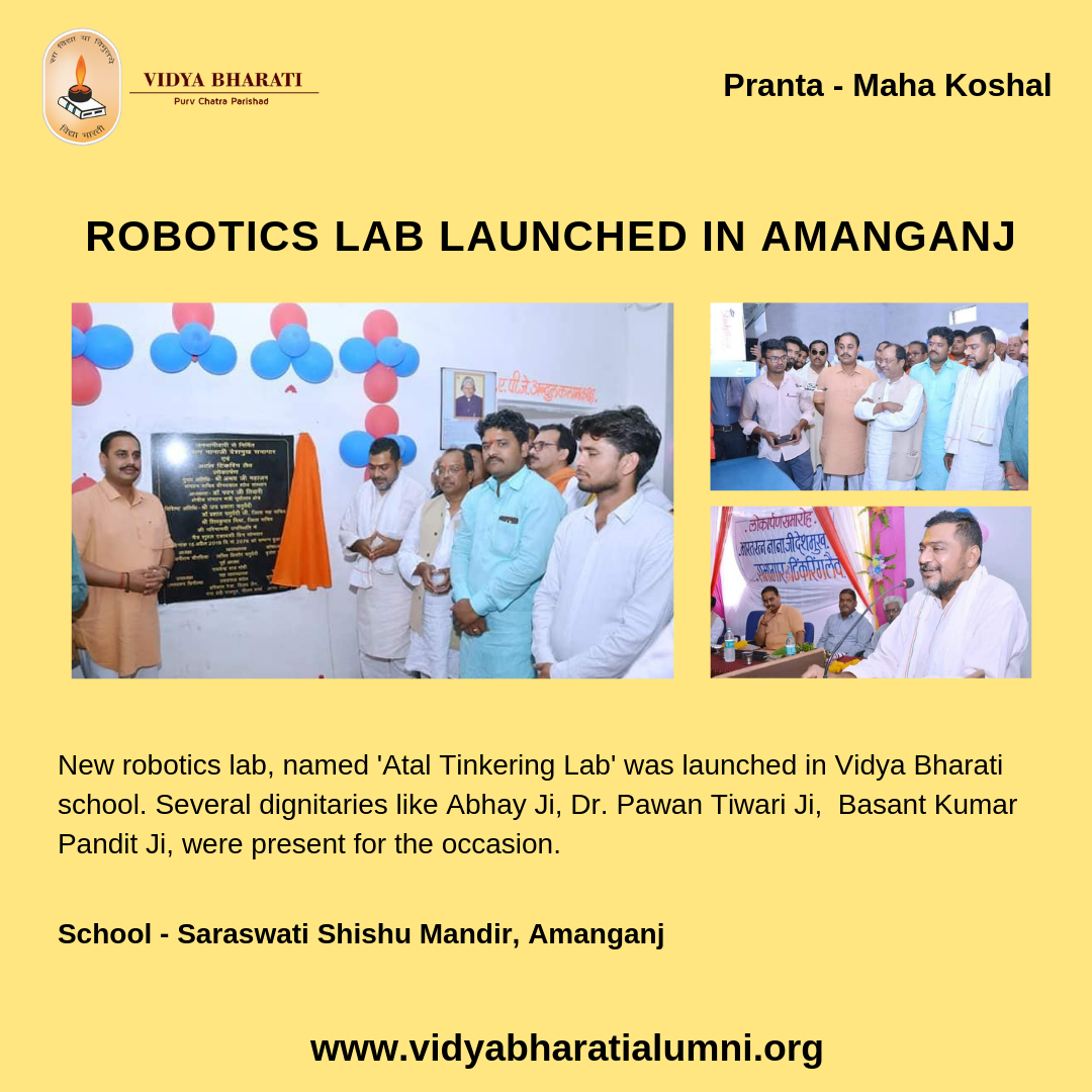 A new robotics lab, named 'Atal Tinkering Lab', was launched in Saraswati Shishu Mandir, Amanganj of Maha Koshal Pranta.