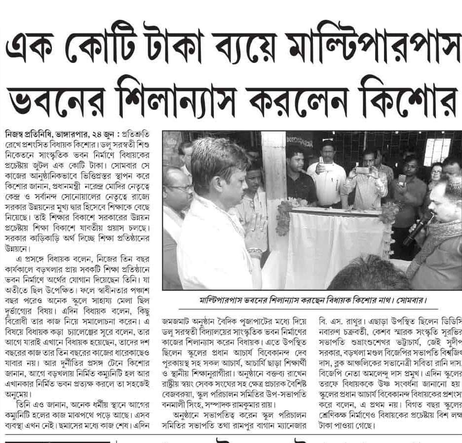 The foundation stone for new Sanskritik Bhavan, worth 1 crore rupees was laid during an event on 27th June 2019 in Saraswati Sishu Niketan Dalu, Assam.