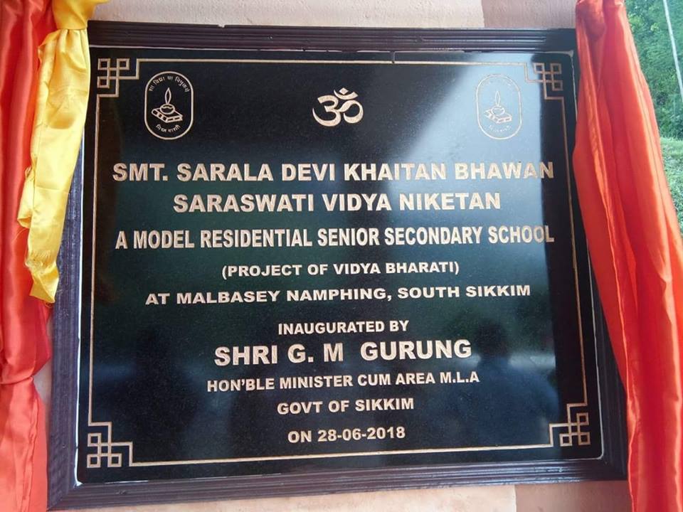 The newly constructed school building of Saraswati Vidya Niketan at Malbasey, South Sikkim was inaugurated by Hon'ble Minister cum Area M.L.A, Govt. of Sikkim, Sri G. M. Gurung.