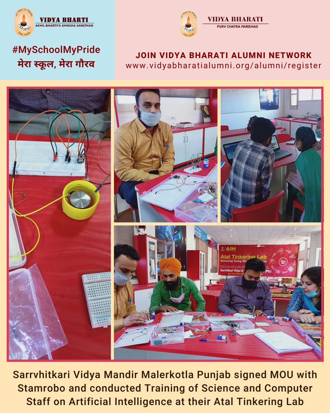 sarrvhitkari vidya mandir malerkotla punjab signed mou with stamrobo and conducted training of science and computer staff on artificial intelligence at their atal tinkering lab