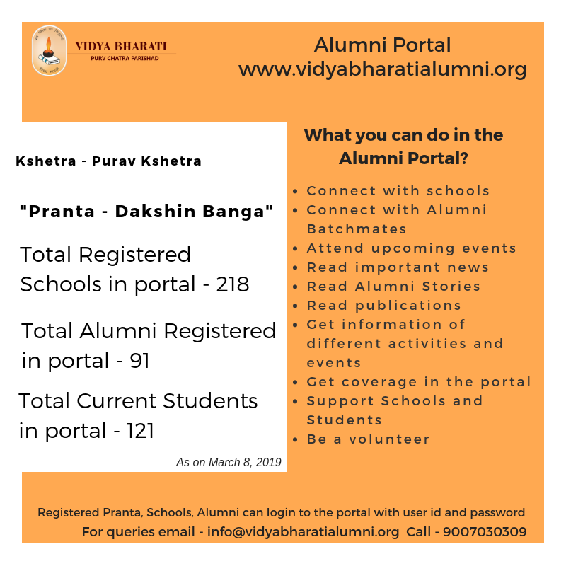 Find more details (Schools & Alumni) of Dakshin Banga Pranta from the Vidya Bharati Alumni Portal.
