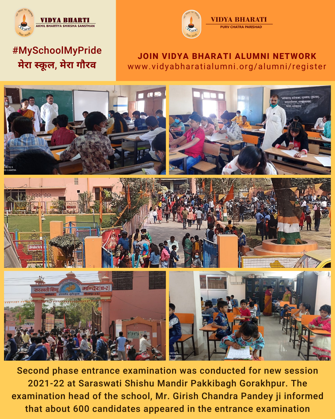 Second phase entrance examination was conducted for new session 2021-22 at Saraswati Shishu Mandir Pakkibagh Gorakhpur. The examination head of the school, Mr. Girish Chandra Pandey ji informed that about 600 candidates appeared in the entrance examination.