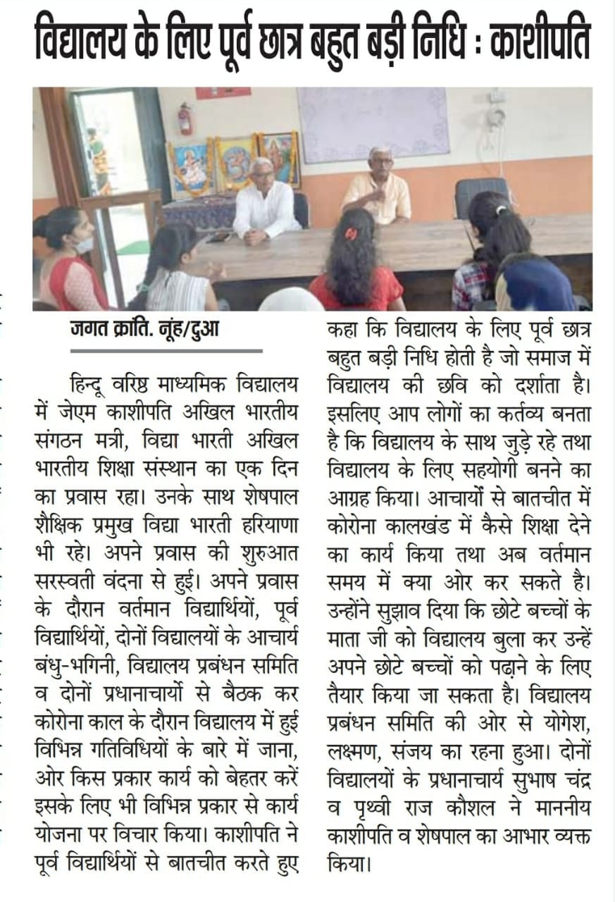 Sri Kashipati Ji (Vidya Bharati Sangathan Mantri), addressed the alumni residing in rural sector of Haryana. He encouraged the alumni to lend a hand towards development of their villages, through sports, organic farming, self employment and setting up of 'Sanskar Kendras'.