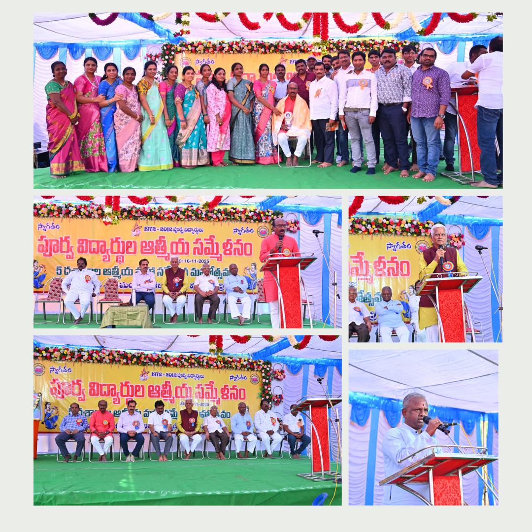 Maanya Shri Lingam Sudhakar Reddy ji, Dakshinamadya Kshetra Sanghatana Mantri, addressed the gathering and inspired alumni to uphold school values and contribute positively to society. Shri Patakamuri Srinivas ji, Vidyapeetham Sanghatana Mantri – Telangana, highlighted the importance of conducting such alumni get-togethers.