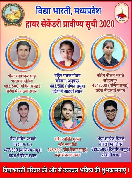 Six Vidya Bharati students from Madhya Pradesh secures place in State Merit List.