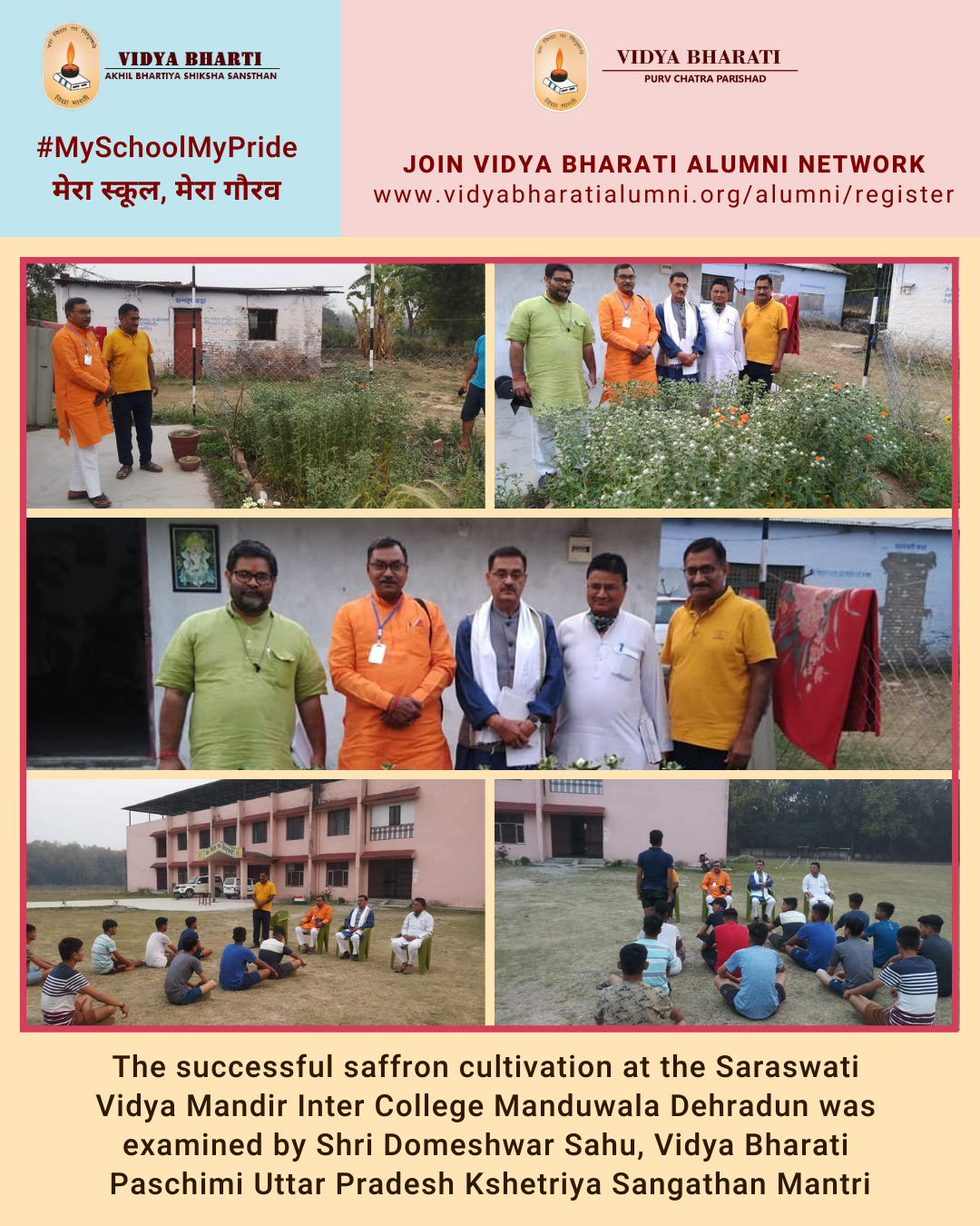 The successful saffron cultivation at the Saraswati Vidya Mandir Inter College Manduwala Dehradun was examined by Shri Domeshwar Sahu, Vidya Bharati Paschimi Uttar Pradesh Kshetriya Sangathan Mantri.