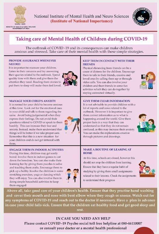 Taking care of the mental health of children during COVID 19. This outbreak can stress the minds of children so there are simple strategies to take care of mental health