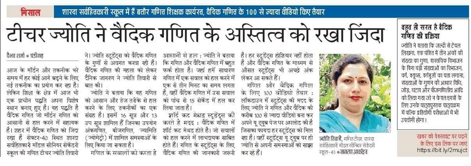 Teacher of Sharda Sarvhitkari Model Senior Secondary School Sector 40 D Chandigarh, Smt.Jyoti Tiwari conducted online webinar on Vedic Maths.