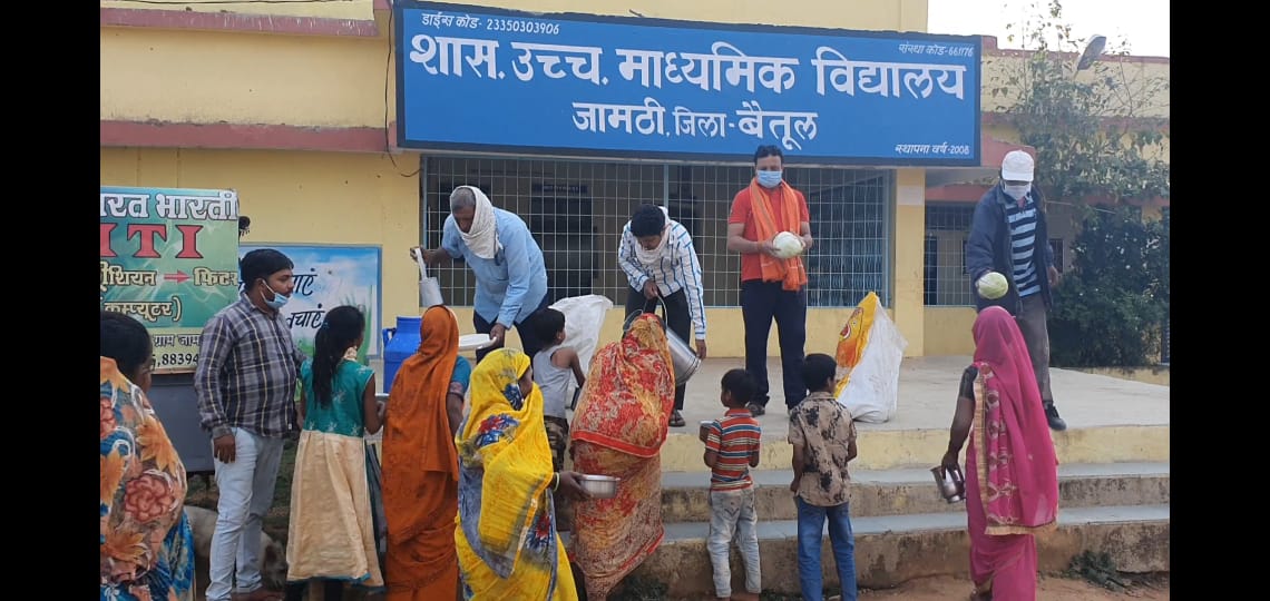 Vegetables and other food items were distributed by Bharat Bharti Awasya School in Jamthi district of Betul.