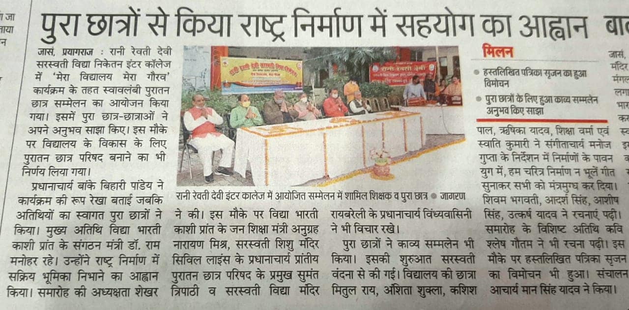 Alumni members of Rani Saraswati Devi Saraswati Vidya Niketan Inter college organised alumni reunion to discuss regarding nation Building.