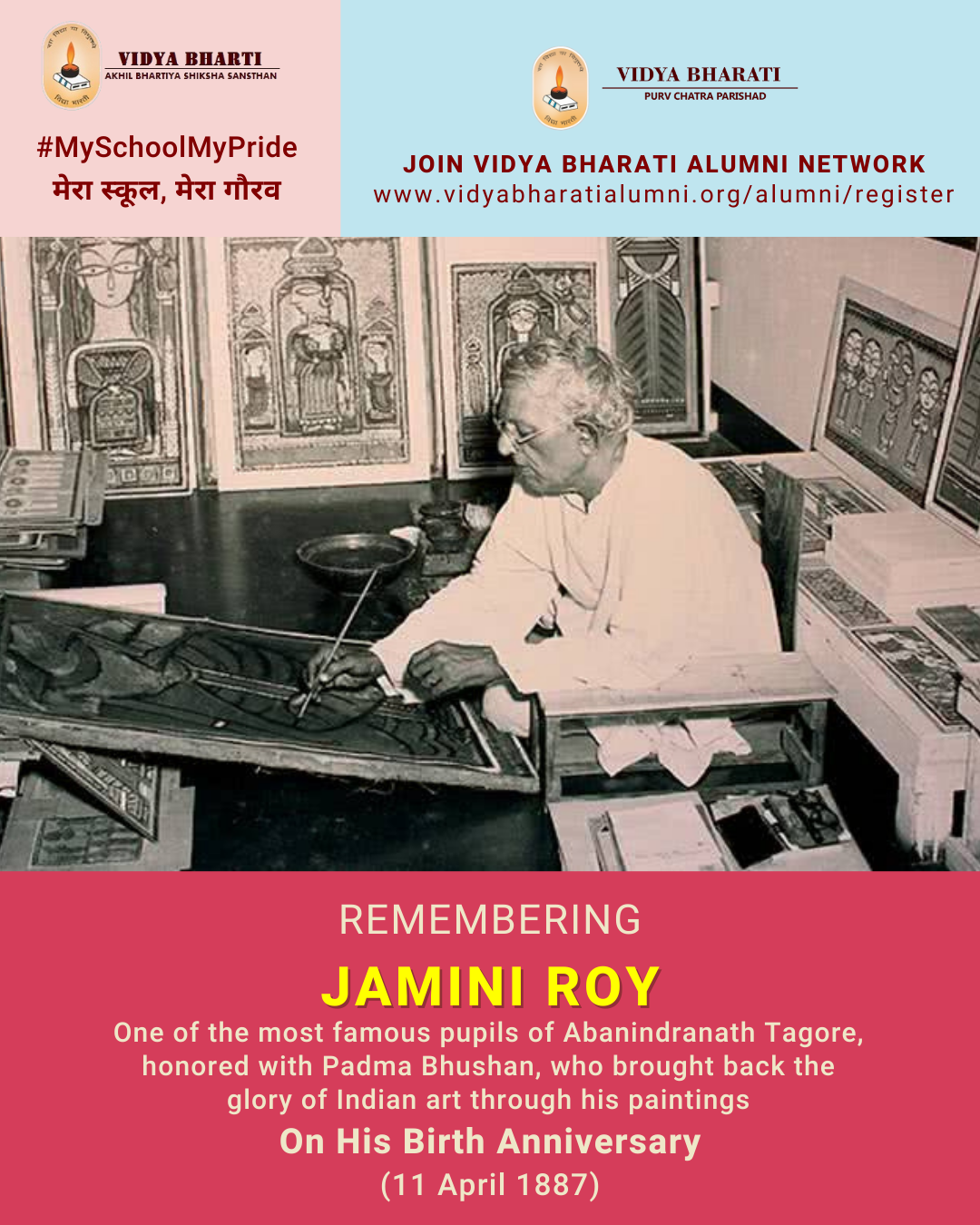 In remembrance of Jamini Roy and as a support toward the nation, let us join the Vidya Bharati Alumni Network.