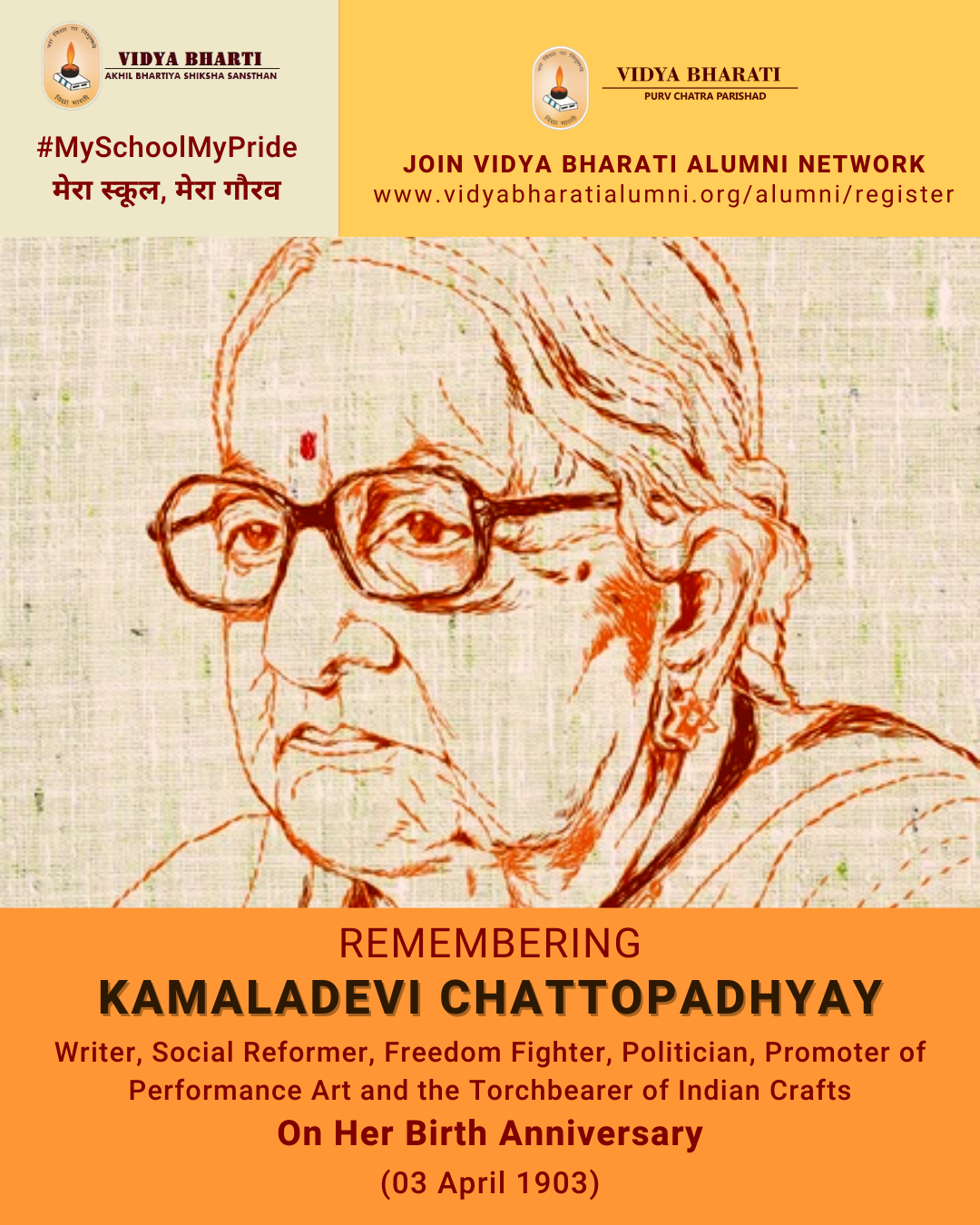 In remembrance of Kamaladevi Chattopadhyay and as a support toward the nation, let us join the Vidya Bharati Alumni Network.