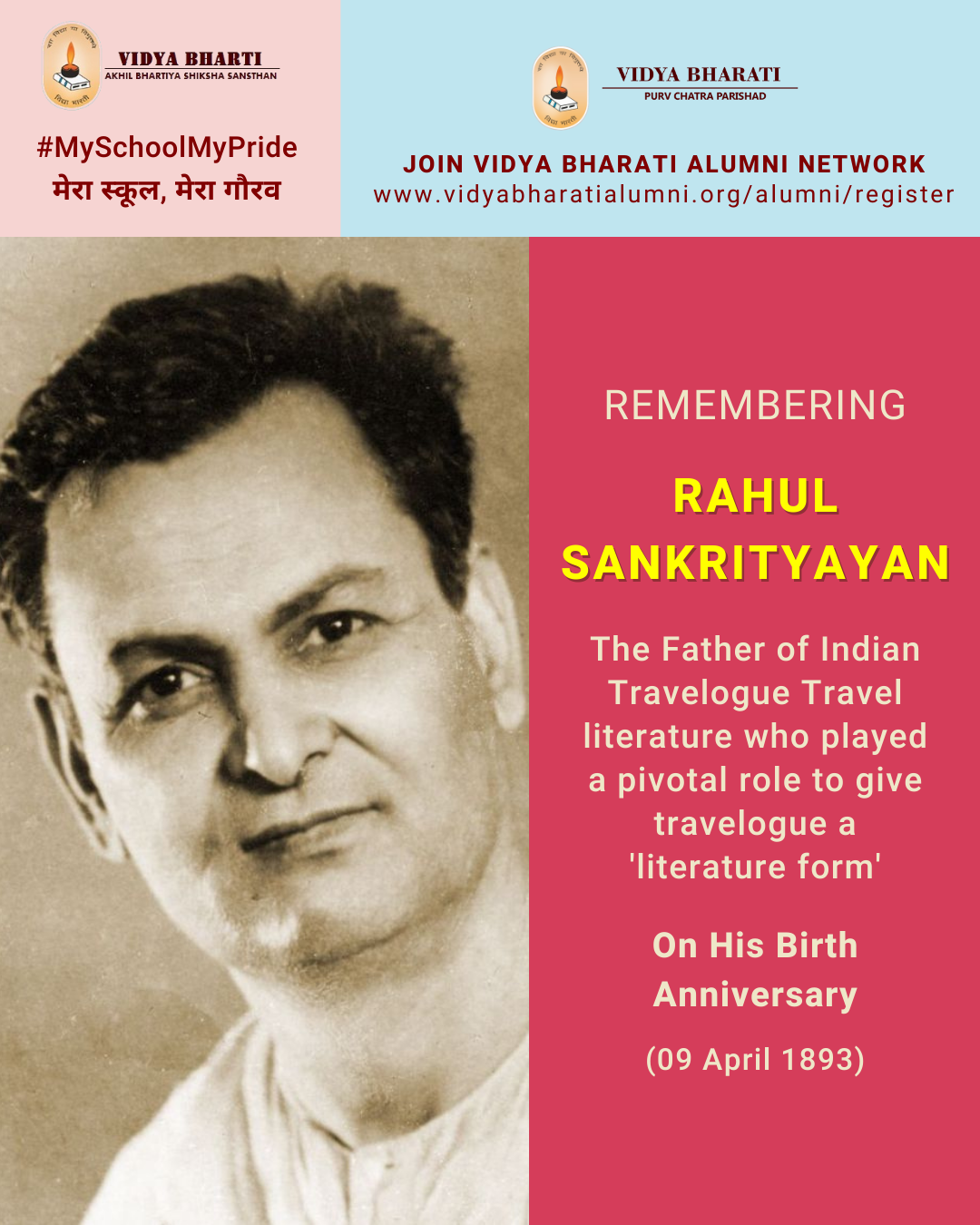 In remembrance of Rahul Sankrityayan and as a support toward the nation, let us join the Vidya Bharati Alumni Network.