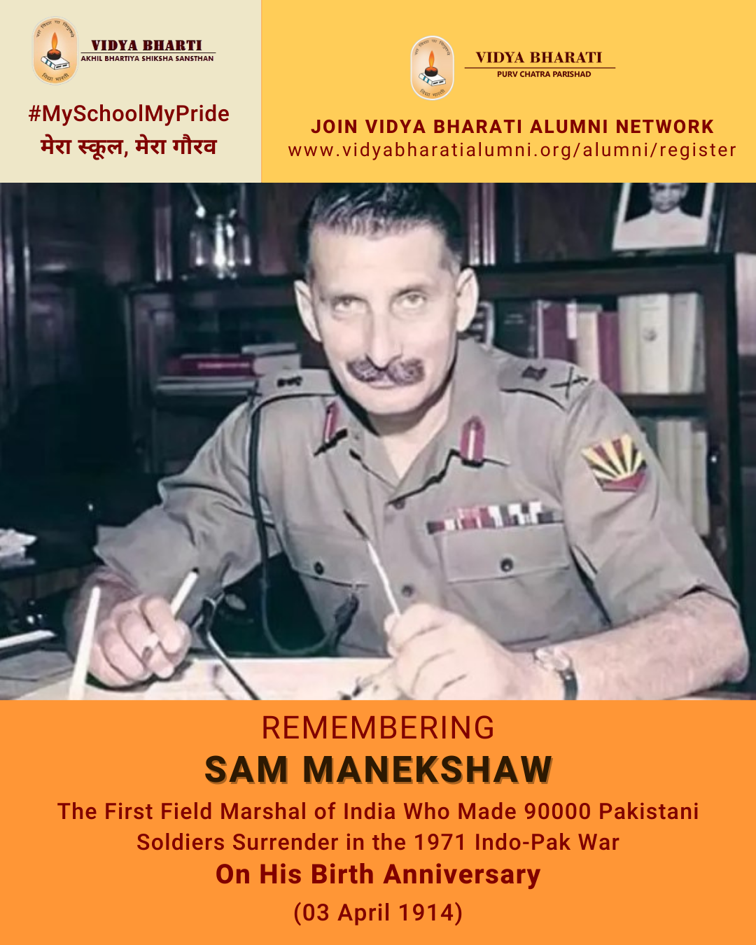 In remembrance of Sam Manekshaw and as a support toward the nation, let us join the Vidya Bharati Alumni Network.