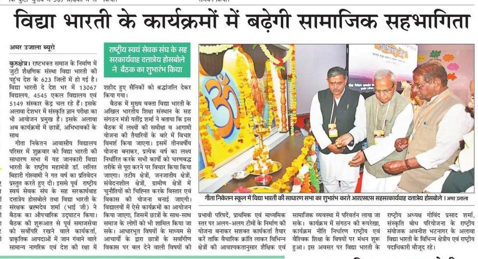 The annual General Assembly of Vidya Bharati took place in Gita Niketan Awasiya Vidyalaya, Kurukshetra from 15th to 17th March 2019.The event was covered in Amar Ujala