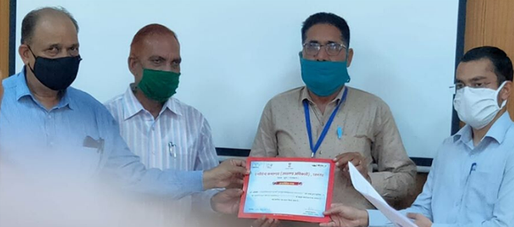 Admin in charge of Adarsh Vidya Mandir Ratangarh, Shri Laxminarayan Sharma Ji was honoured by Ratangarh administration for making Vidya Bharati schools available to be used as quarantine centers during Covid 19 pandemic.