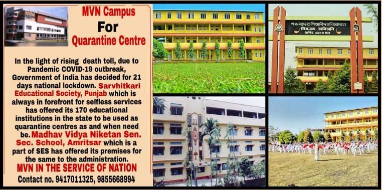 After Madhya Pradesh, 170 educational institutions in Punjab and schools under Vidya Bharati Assam have pledged to help the respective State governments, by turning their buildings into CONVID 19 isolation centers, as and when the need arises