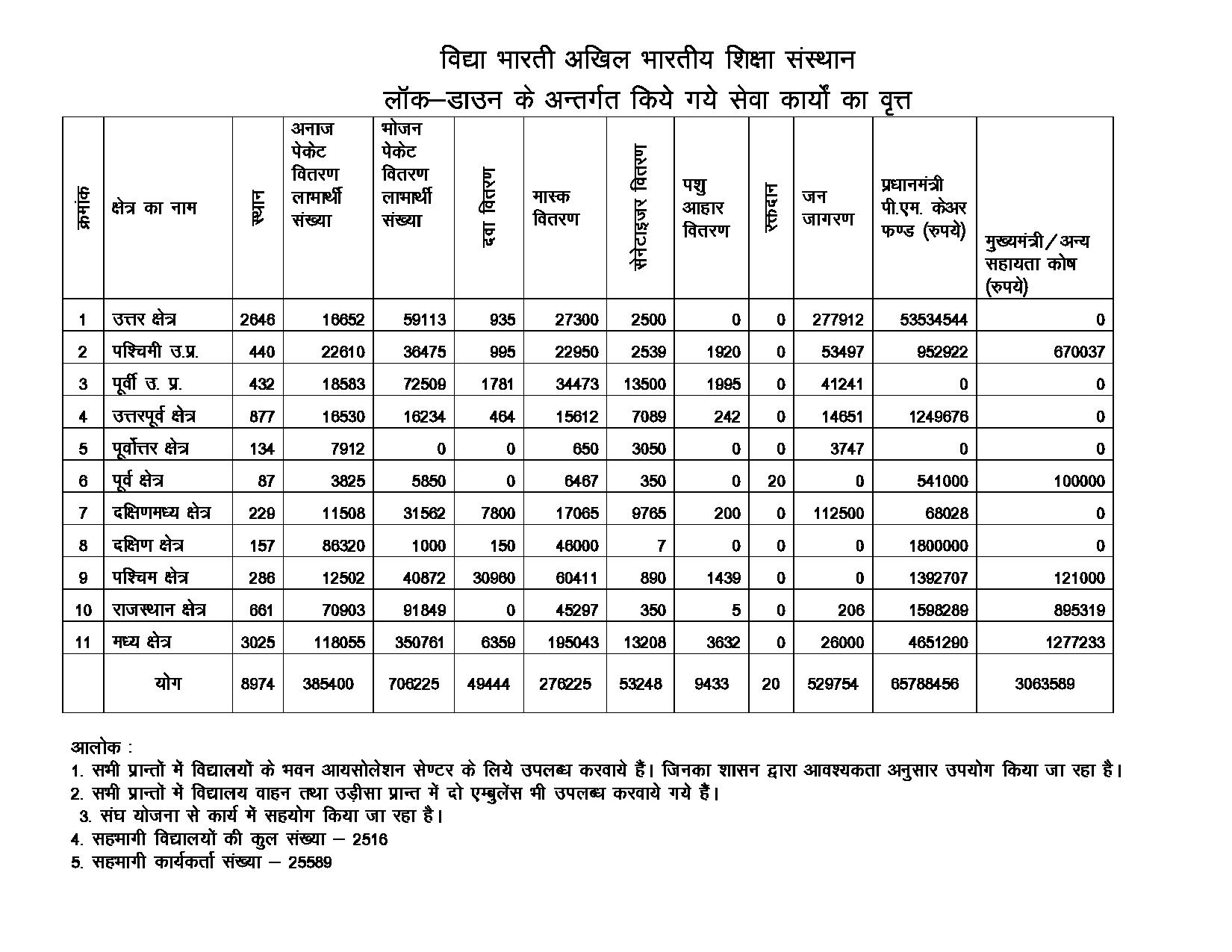 During the ongoing country wide lock down due to Covid 19 pandemic, the entire community of Vidya Bharati has come forward to help those in need. A snapshot of the social activities done till 26th April 2020 has been given below.