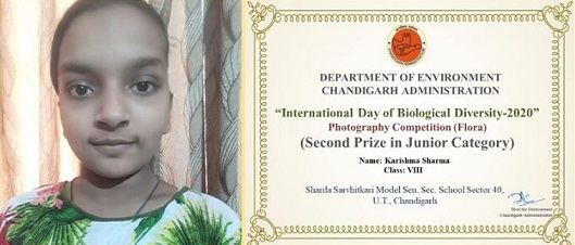 Vidya Bharati Purv Chatra Parishad congratulates Krishma Sharma of Sharda Sarvhitkari Model Sr.Sec School 40 D Chandigarh, for receiving 2nd prize in photography contest held by Department of Environment, Chandigarh Administration
