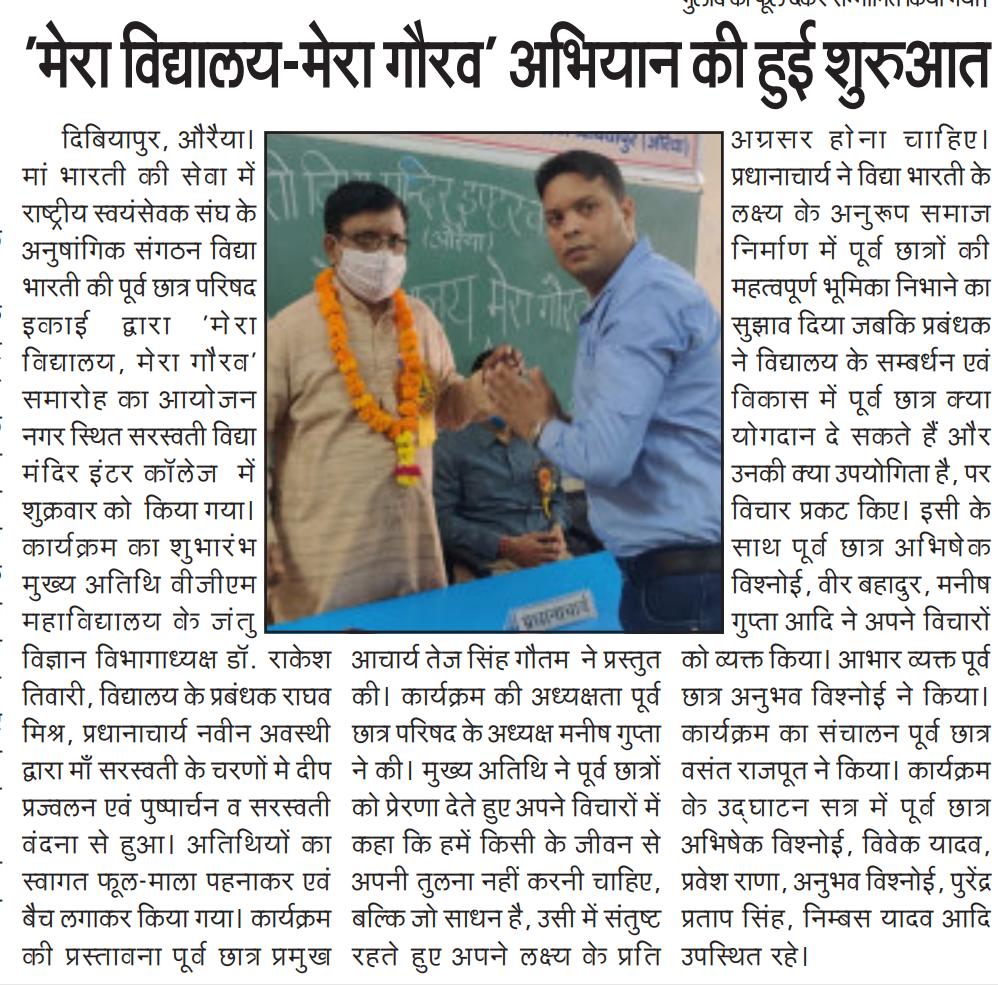 My School, My Pride campaign under Vidya Bharati Utsav 2020 was launched in different Uttar Pradesh schools, which was captured in Print media.