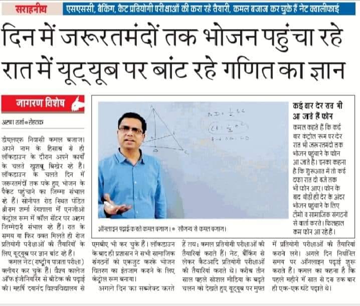 Vidya Bharati alumni Kamal Bajaj distributes cooked food to the needy during the day and teaches maths during the night through Youtube to students so that the do not fall back during the lock down period