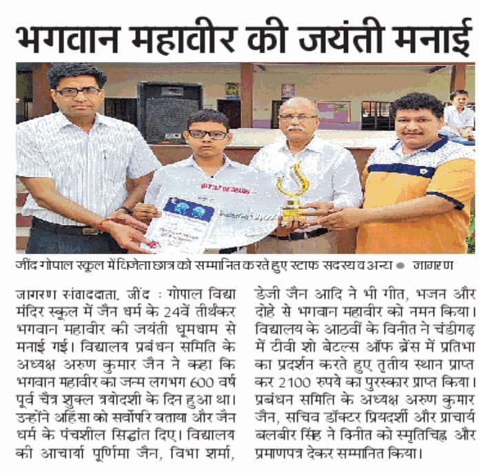 At Gopal Vidya Mandir, Vineet secured 3rd rank at a T.V show, Battle of Brains. He was awarded with a certificate and Rs 2100 by the dignitaries of Prabandhan Samiti.